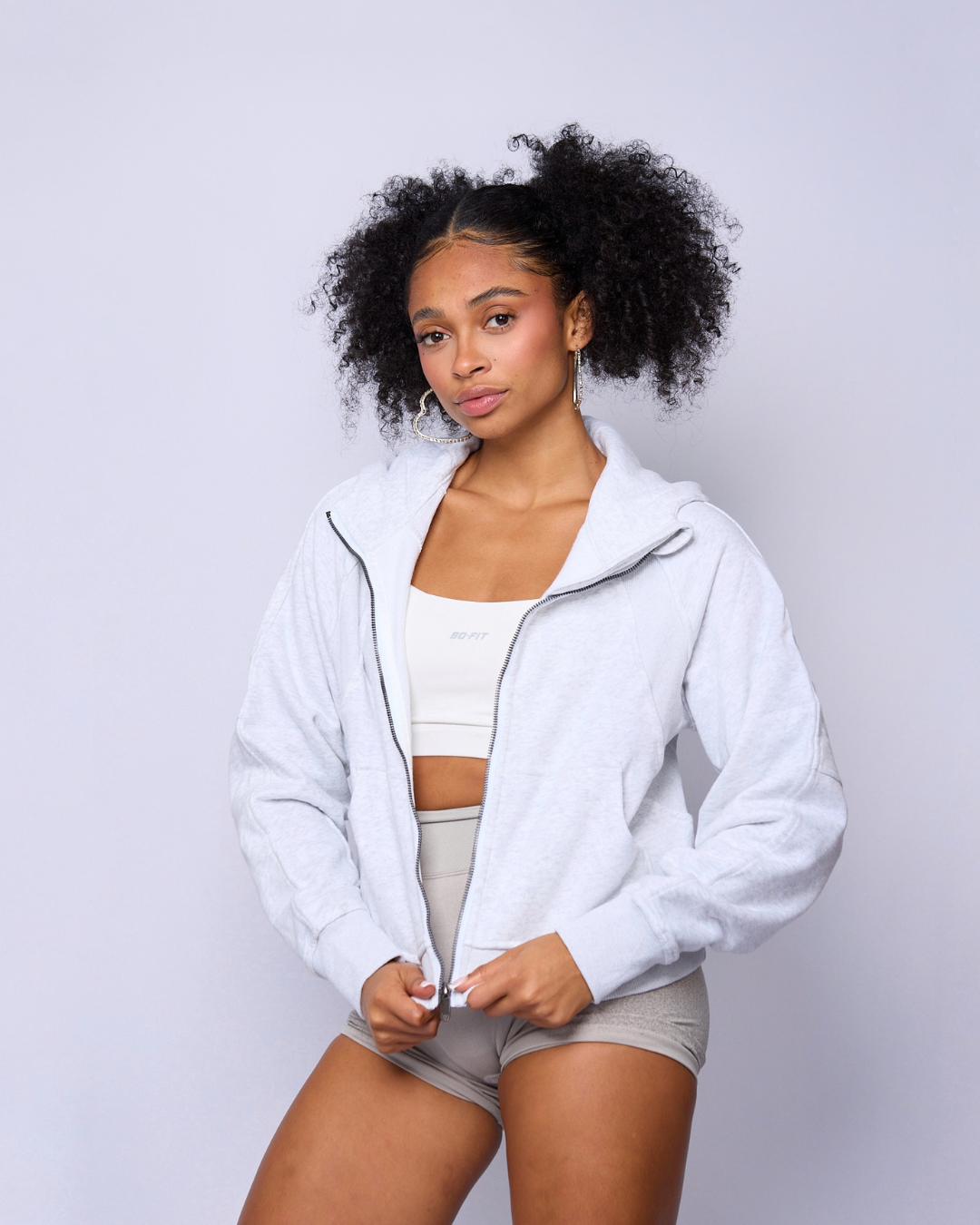 El Bunny Hoodie 🩶, es la combinación perfecta de comodidad y estilo cute. Confeccionado en una tela suave y ligera, ofrece una silueta relajada que abriga sin perder movilidad. Su diseño minimalista con cierre frontal, capucha cómoda y mangas ligeramente ajustadas lo hace ideal para esos días en los que quieres sentirte cozy, sporty y girly al mismo tiempo.