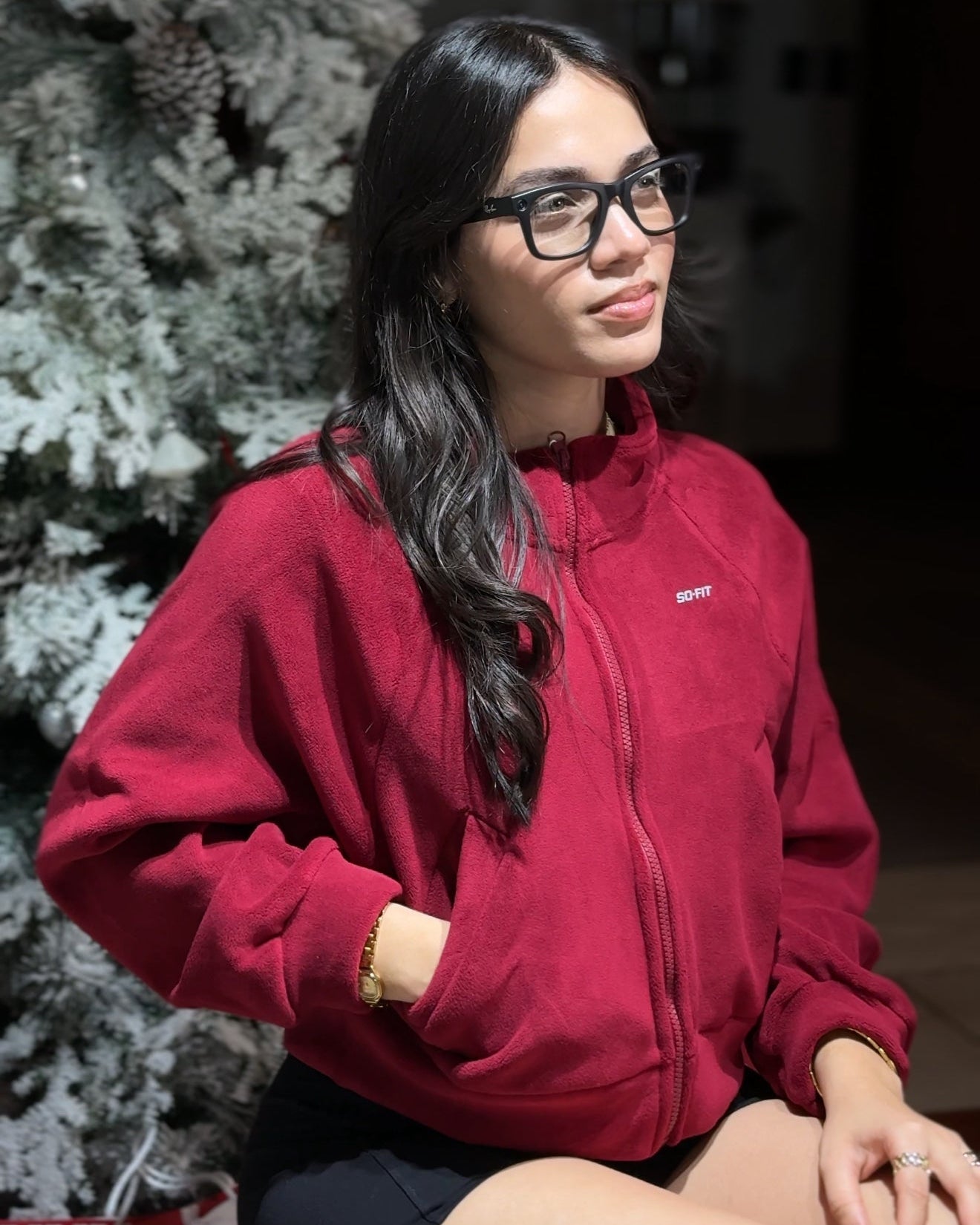 Abrigo con tela de peluche delgada, combina funcionalidad, comodidad y estilo, convirtiéndolo en una opción popular para quienes buscan una prenda versátil para sus actividades físicas.