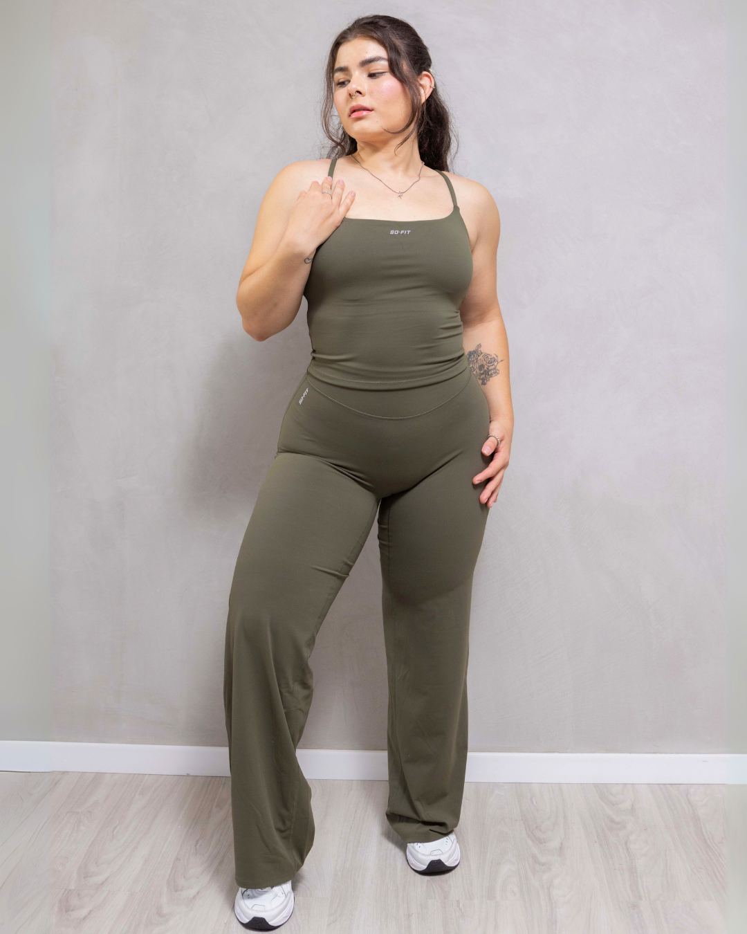 La blusa ofrece un ajuste firme con tirantes delgados y escote limpio, mientras que los leggings destacan por su silueta favorecedora y moderna. Ideal para entrenamientos suaves, caminatas o simplemente verte increíble mientras te mantienes activa.