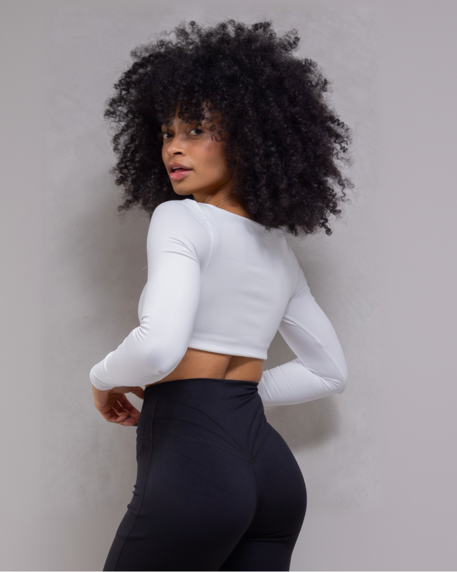 Este top ajustado de manga larga y escote cuadrado ofrece el equilibrio perfecto entre estilo y comodidad. Su diseño versátil es ideal para entrenar o para un look casual.