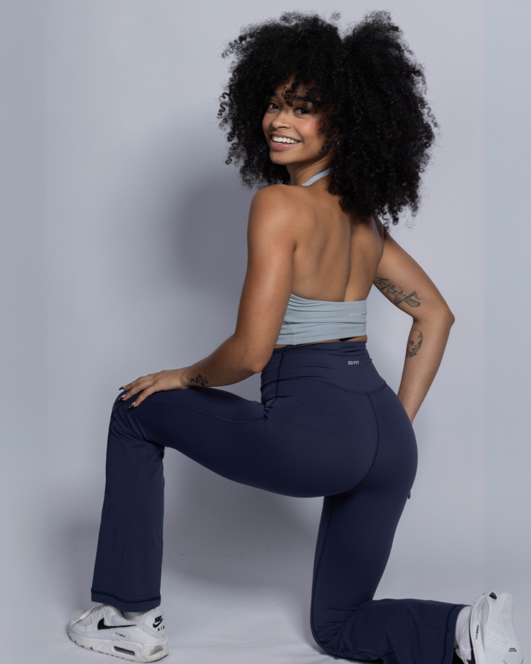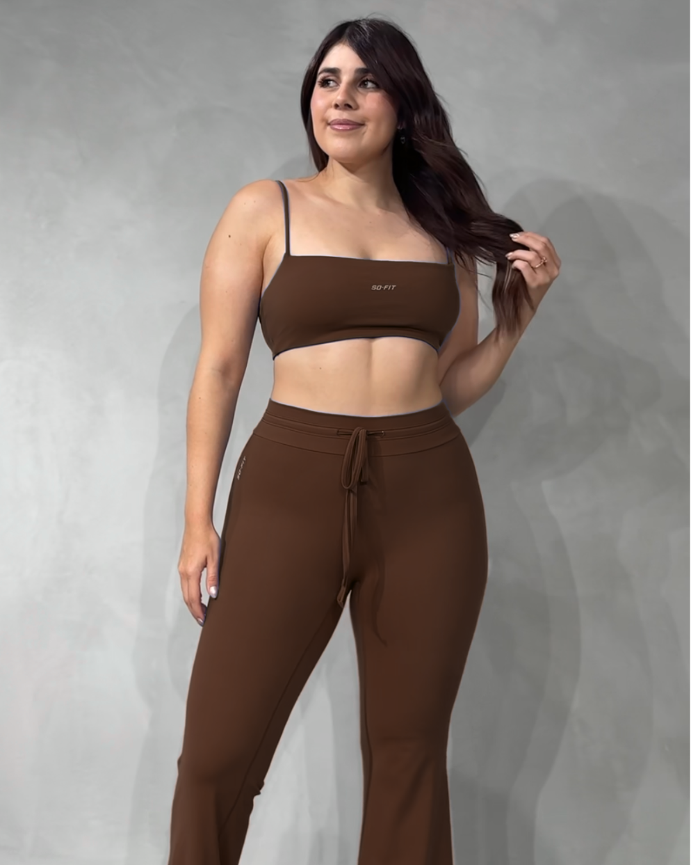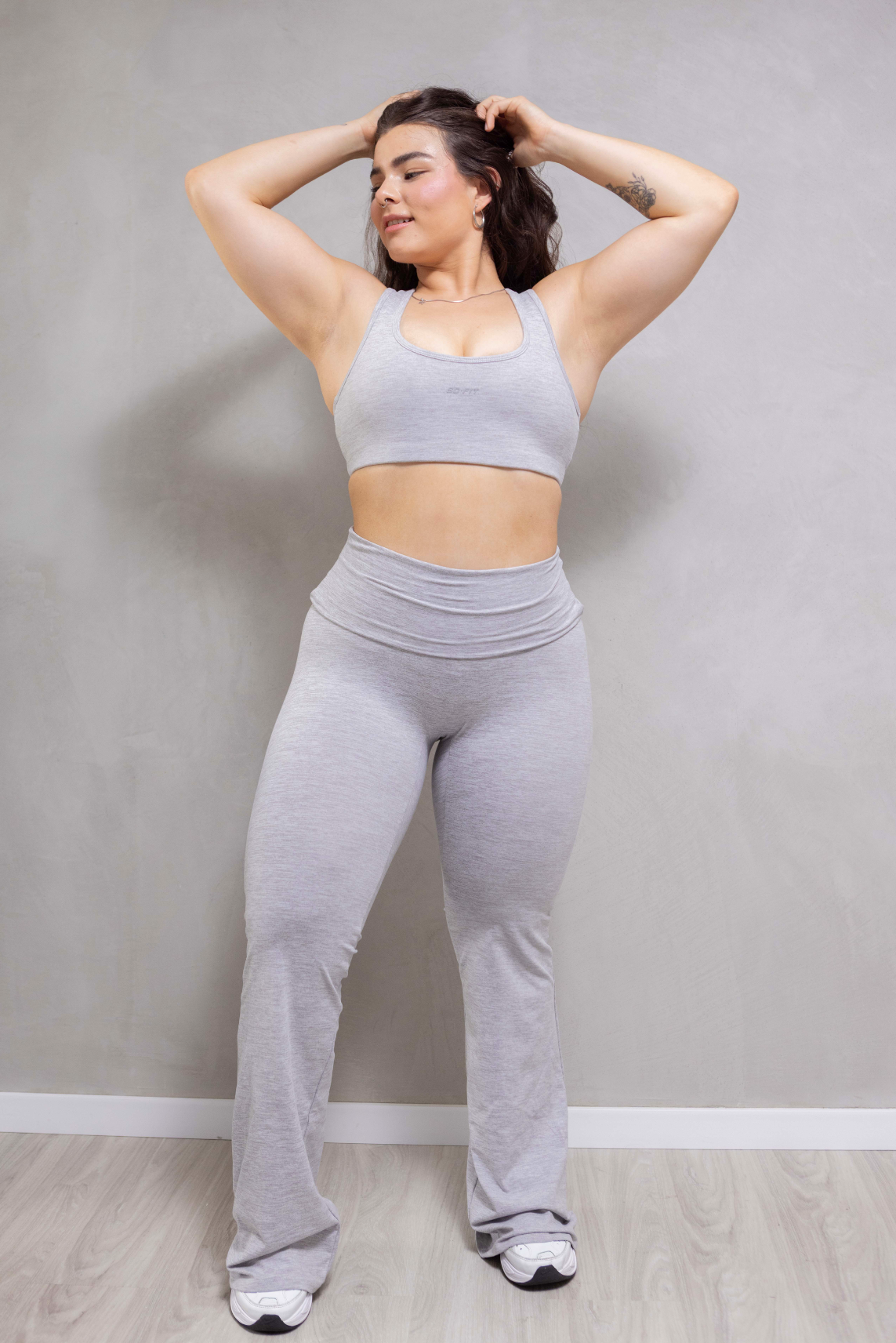 Ideal como ropa deportiva para gimnasio, yoga, pilates o entrenamientos funcionales, y lo suficientemente versátil para llevar en tus actividades diarias. Su pantalón flare estiliza las piernas y aporta un toque elegante, mientras que el top deportivo y la t-shirt opcional te permiten crear looks adaptados a tu estilo.