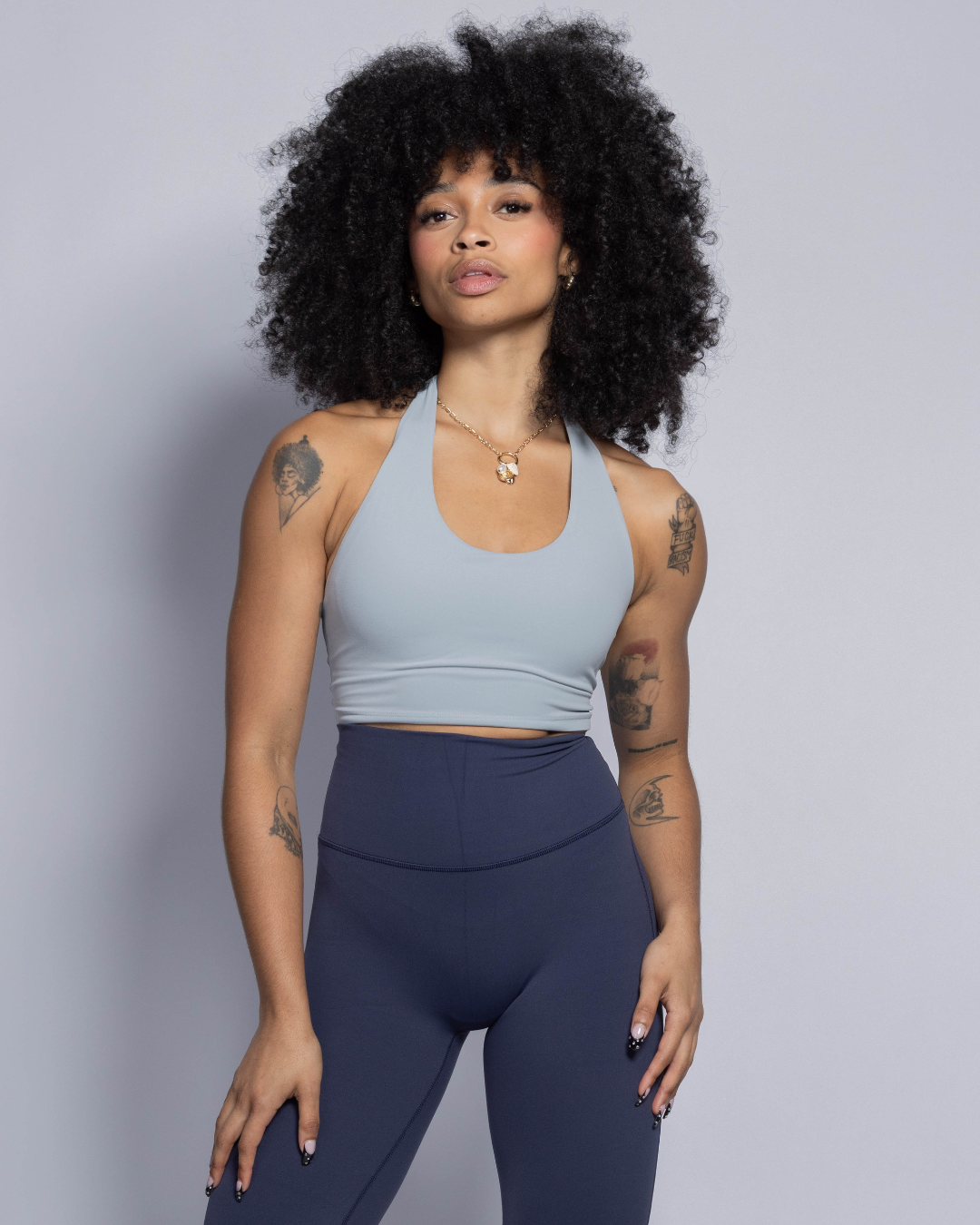 Top deportivo con diseño halter que realza tu figura y brinda el soporte ideal para entrenar o moverte con total libertad. Confeccionado en tela suave al tacto, incluye top interno con copas removibles para mayor comodidad y versatilidad. Su corte moderno en el cuello combina estilo y funcionalidad, convirtiéndolo en una opción perfecta tanto para el gym como para el día a día.