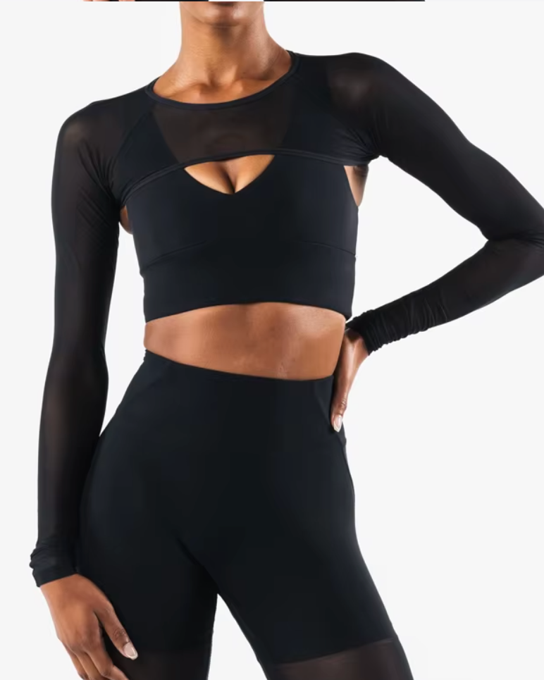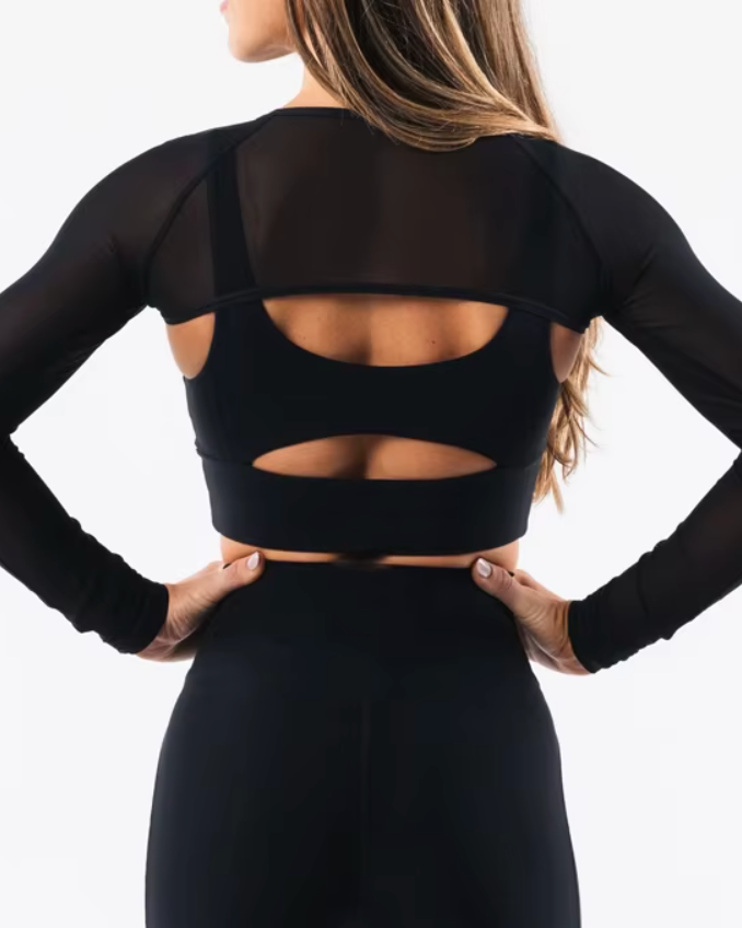 Top manga larga mesh