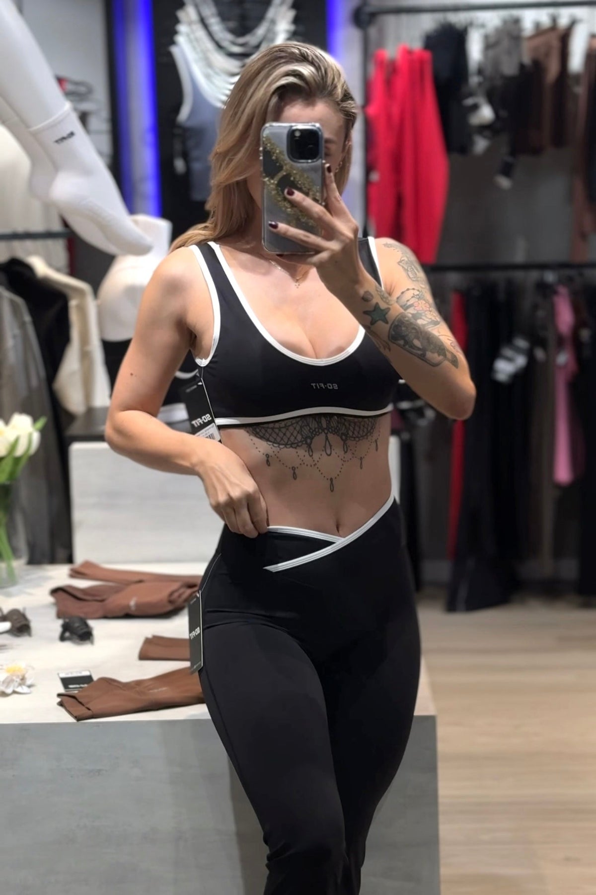 Diseñado para acompañarte dentro y fuera del gym, el set Alma combina funcionalidad y estilo. Su tela elástica, suave al tacto y de secado rápido se adapta perfectamente al cuerpo, brindando comodidad durante todo el día.