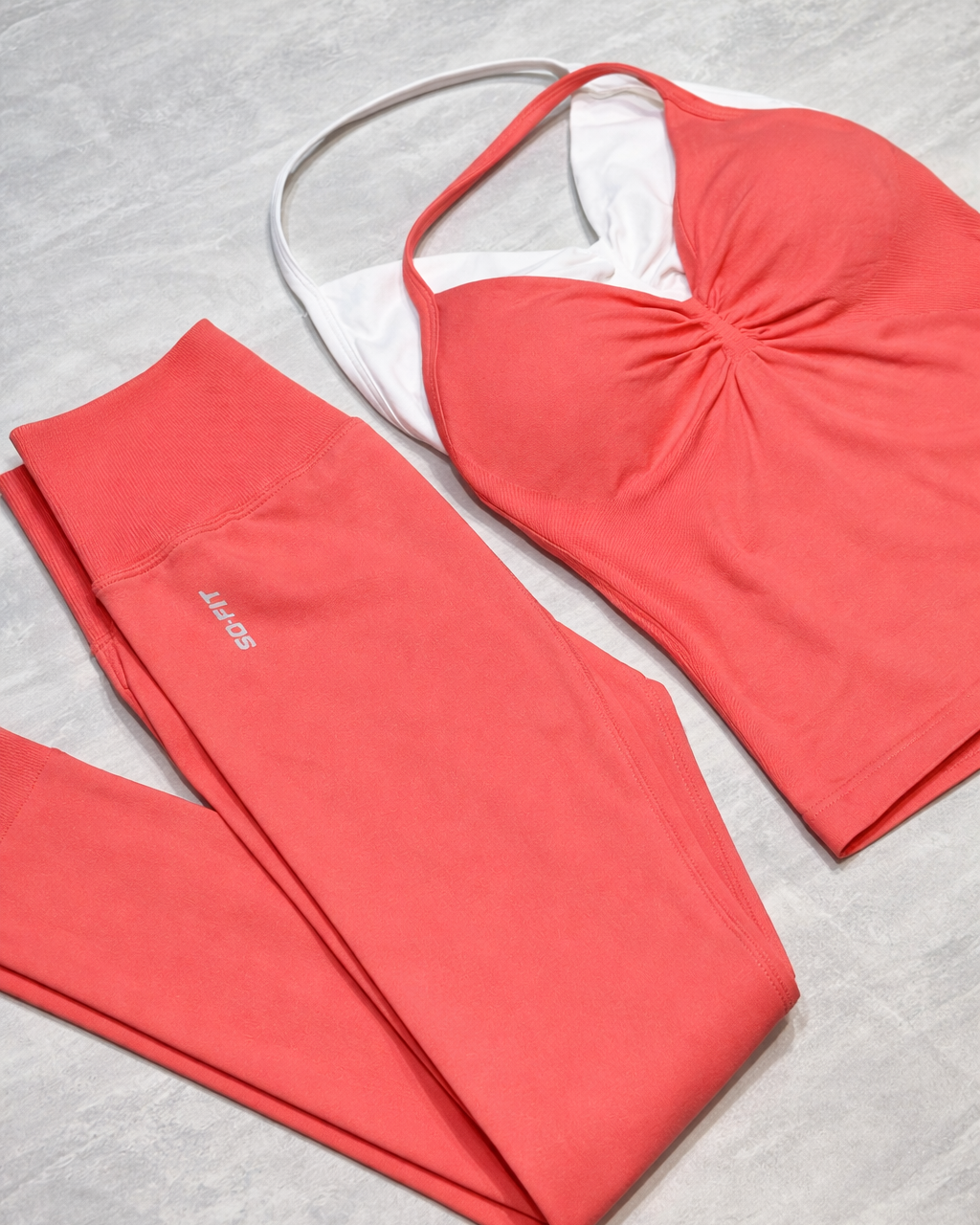 Diseñado para ofrecer máxima comodidad y estilo, este conjunto incluye un top deportivo que asegura soporte y libertad de movimiento, ideal para actividades de alta intensidad.
