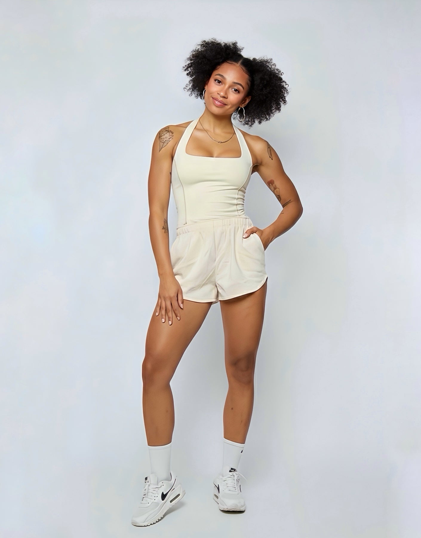 La blusa Aria, es ligera, suave y femenina. Diseñada para acompañar tu movimiento con total comodidad, aporta un fit delicado que complementa perfectamente el set, ideal para entrenar o para un look athleisure.