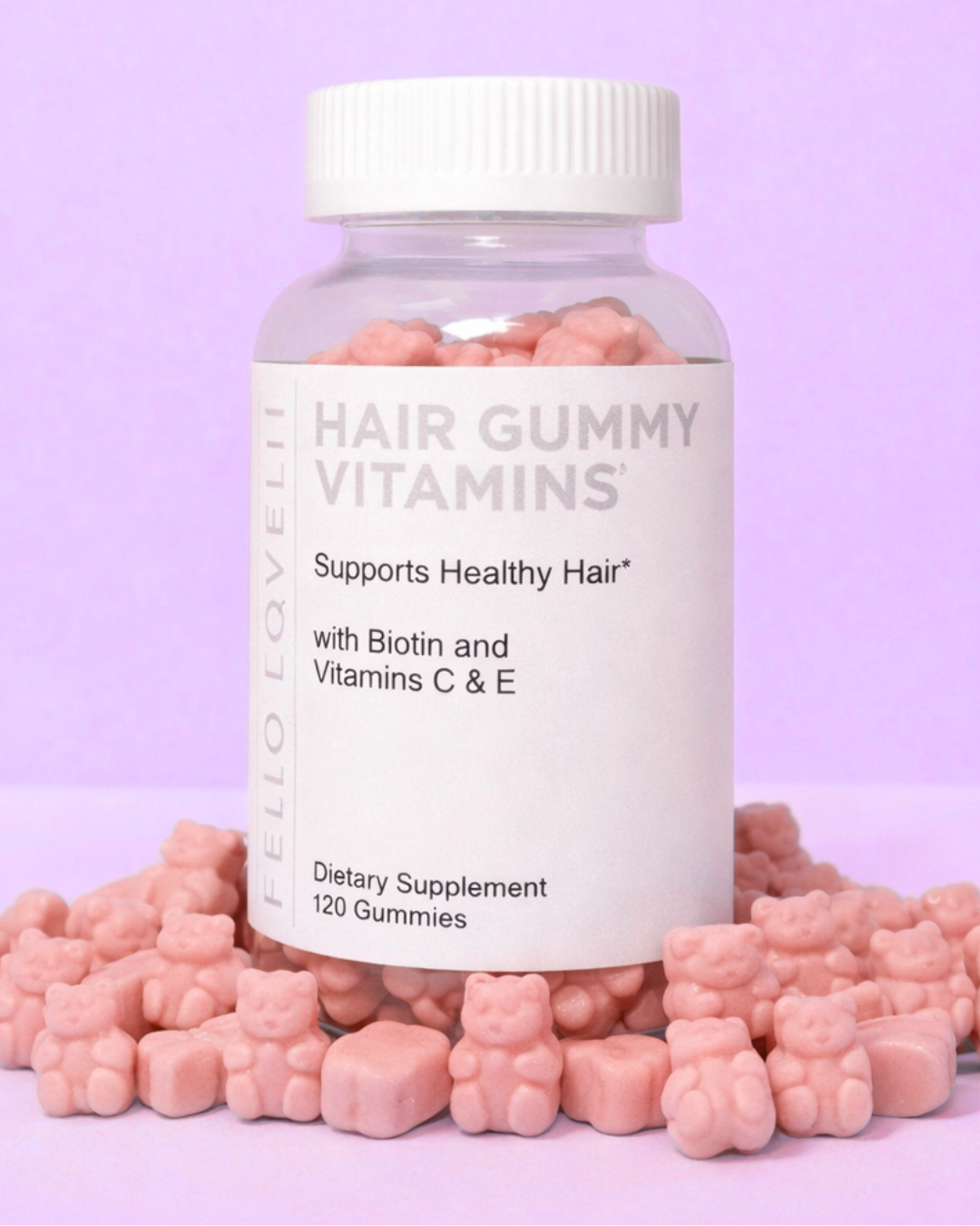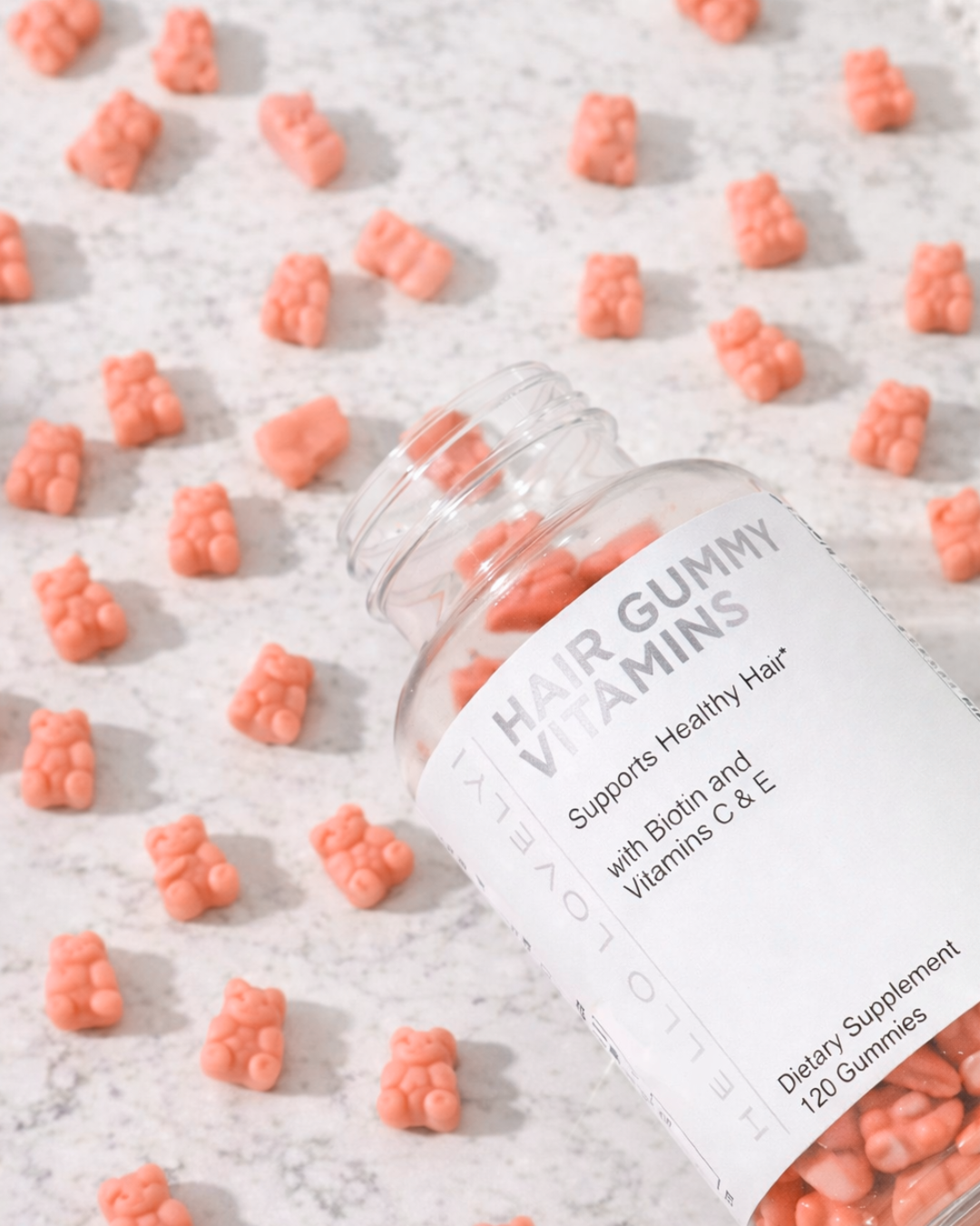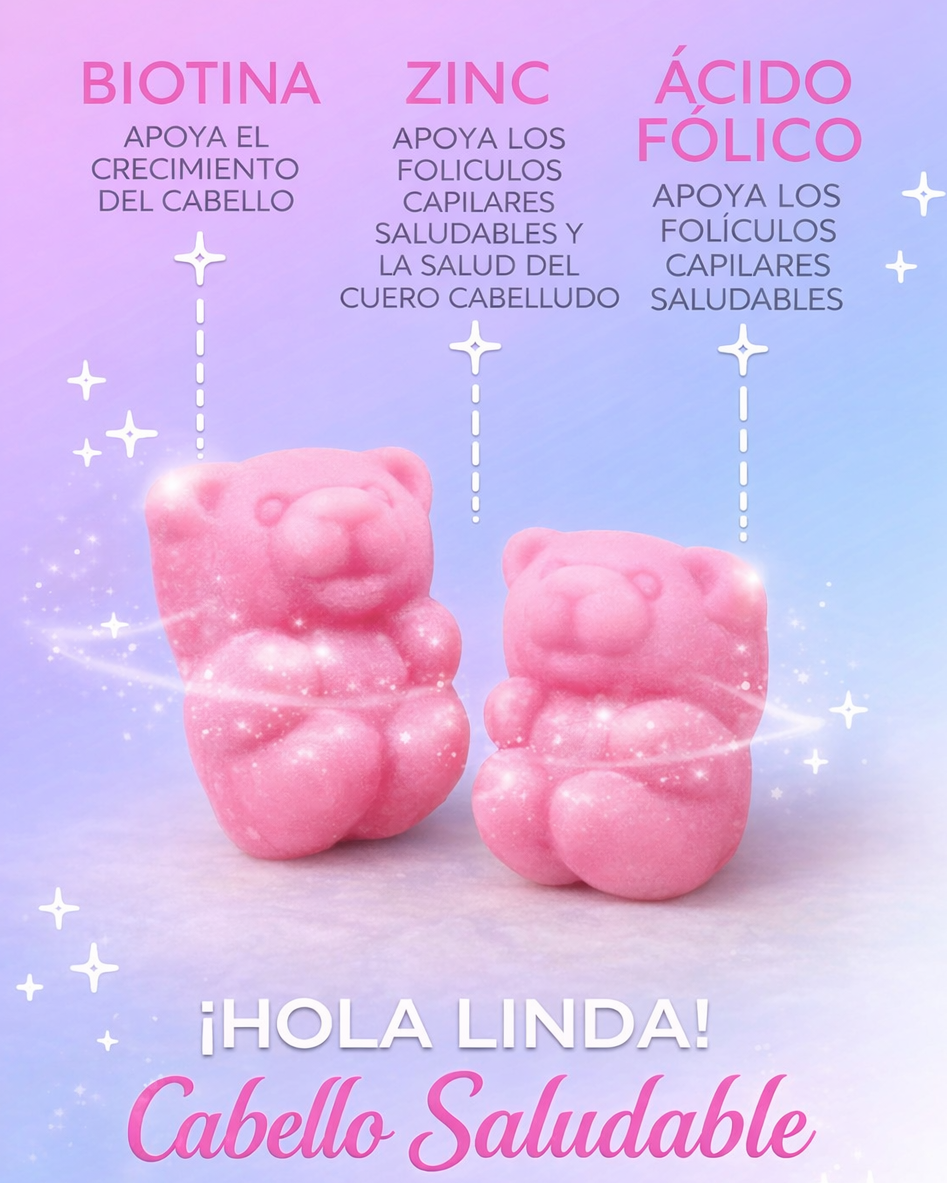 Gomitas de vitaminas para el cabello con biotina, 5000 mcg de vitaminas E y C que apoyan el crecimiento del cabello, vegetariano, de primera calidad, sin OMG, para cabello y uñas más fuertes, hermoso y fuerte, suplemento de bayas rojas, 60 gomitas de osito